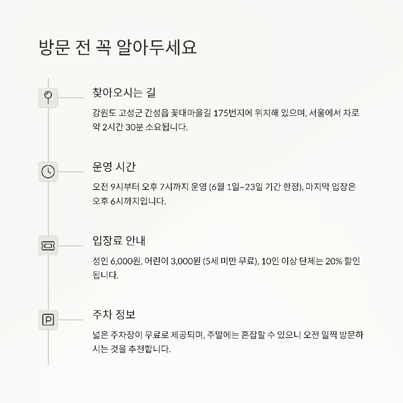 | 위치 | 강원도 고성군 간성읍 꽃대마을길 175 하늬라벤더팜 |