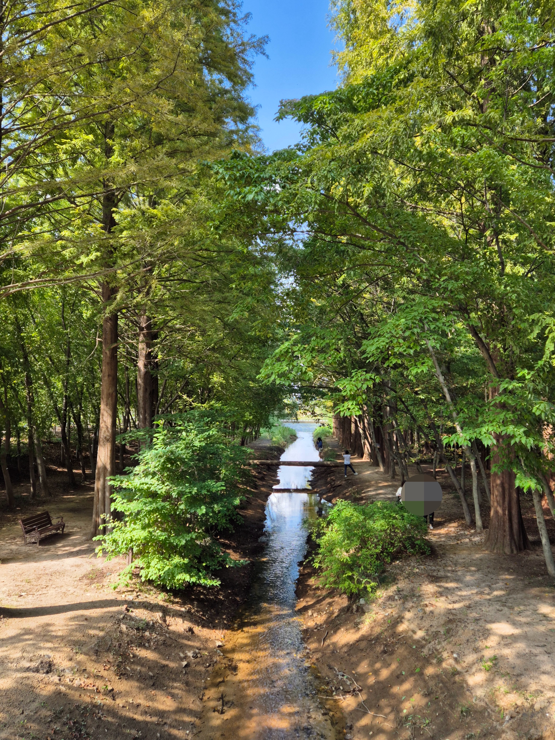 천년숲정원에는 총 13개의 테마 정원이 조성되어 있습니다. 그 중에서도 외나무다리는 정말 인상 깊었습니다. 실개천 위에 설치된 이 다리는 물에 비친 나무들이 거울처럼 반사되어 마치 영화 속 한 장면처럼 아름다운 풍경을 연출합니다. 저희 가족도 이곳에서 사진을 찍으며 오랫동안 머물렀고, 지나가던 커플과 웨딩 촬영 중인 커플들도 눈에 띄었습니다. 또 하나 기억에 남는 곳은 버들못 정원입니다. 수양버드나무 아래 놓인 벤치에서 아이와 간식도 먹고 잔잔한 연못을 바라보며 휴식을 즐길 수 있었어요.