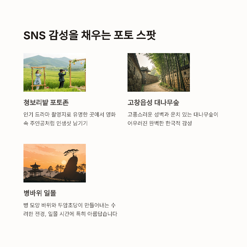 고창 여행은 단순한 자연 감상 이상의 가치를 선사합니다. 청보리밭에서는 초록 물결 속에서 사색에 잠기고, 고창읍성에서는 조선의 역사를 몸소 느낄 수 있죠. 저는 개인적으로 SNS에 올릴 인생샷도 많이 건졌지만, 그보다 더 값진 건 바쁜 일상 속에서 여유와 힐링을 찾았다는 점이었습니다. 특히 고창은 대중교통으로도 접근이 수월하고, 축제 기간에는 안내판도 잘 정비되어 있어 여행 초보자도 쉽게 다녀올 수 있는 곳이에요. 여행을 고민하고 계셨다면, 이번 봄엔 고창으로 떠나보세요. 자연과 사람이 어우러진 풍경 속에서 잊지 못할 추억을 만들 수 있을 거예요.