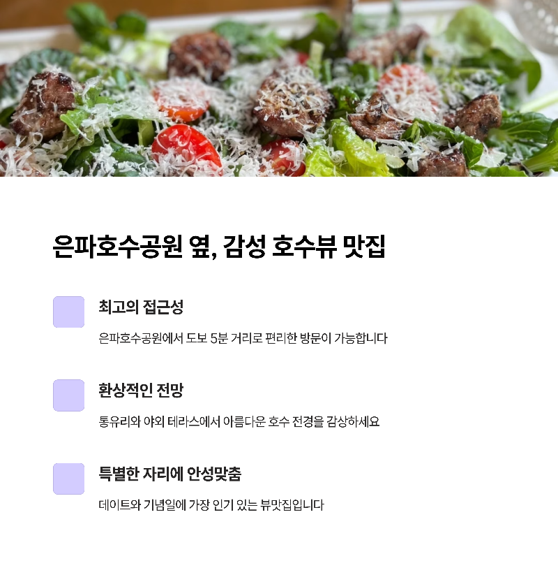 | 메뉴 다양성 | 은파호수 전망 | 예약 필수 |