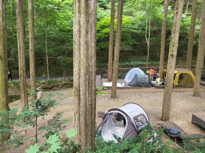 특히 인상 깊었던 부분은 지정된 텐트 설치 구역입니다. 숲속 어드벤처 인근에는 원터치 텐트를 설치할 수 있는 한적한 공간이 마련되어 있는데, 나무 그늘 아래 바람이 불어와 정말 시원하고 쾌적했습니다. 주말에는 방문객이 많아 경쟁이 치열할 수 있으니 이른 시간 방문을 추천드립니다. 휴양림 입구에 주차장이 마련되어 있지만, 차량 진입은 숙소 예약자에게만 허용되기 때문에 일반 방문객은 입구에서 도보로 이동해야 합니다. 하지만 그 거리마저도 자연과 함께 걷는 산책길이라 하나도 불편하지 않았습니다.