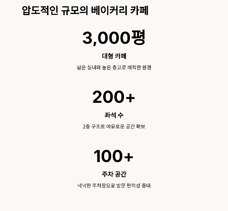 | 해상케이블카 인접, 관광지 연계 코스로도 적합. | 빵이 떨어질 경우 실시간으로 구워내는 시스템. | 포토존 다수. 자연광과 인테리어 조명이 잘 어우러짐. |