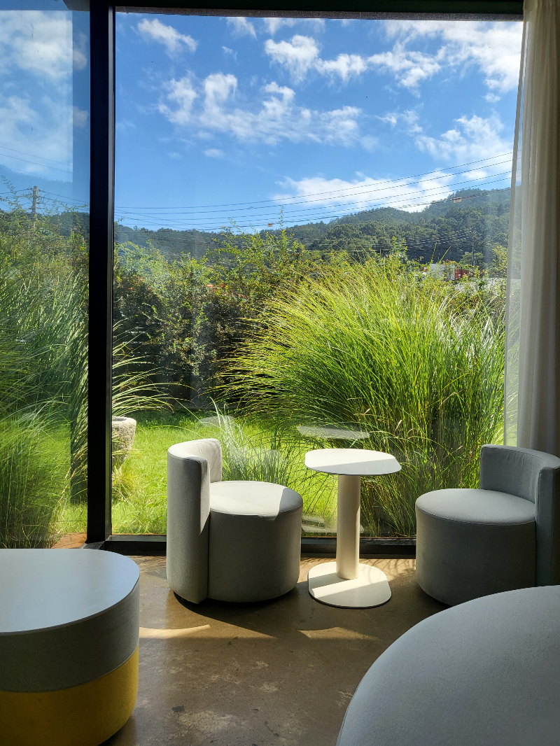 세종시 금남면을 지나 호탄리 마을회관 앞에 도착하면, 따뜻한 감성으로 가득한 공간, 카페비일상이 눈에 들어옵니다. 입구부터 보이는 정원은 마치 작은 공원처럼 잘 정리되어 있으며, 시기마다 피는 수국과 계절 꽃들이 이곳을 더욱 특별하게 만들어줍니다. 특히 6~7월 수국이 만개할 때는 사진을 찍기 위해 찾는 사람들이 많다고 해요. 저도 정원 앞 벤치에서 한참을 머물며 여유로운 시간을 보냈습니다. 야외 테라스와 통창 앞 좌석은 탁 트인 느낌을 주어 계절감을 그대로 느낄 수 있습니다. 내부로 들어서면 모던한 감성의 인테리어와 따뜻한 조명이 조화를 이루며 누구와 함께 와도 편안하게 시간을 보낼 수 있는 분위기를 자아냅니다.