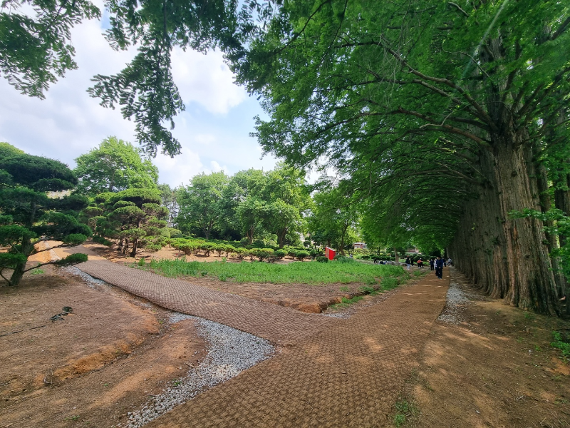 아가페정양원에 도착한 순간, 먼저 눈에 들어온 것은 푸르른 자연이 펼쳐진 광경이었습니다. 입구에는 정갈하게 다듬어진 나무들이 환영하듯 서 있었고, 바로 앞에 펼쳐진 메타세쿼이아 길은 입장과 동시에 숨을 깊이 들이쉬게 했습니다. 150m 정도 되는 산책로는 양쪽으로 곧게 뻗은 나무들이 만들어낸 초록 터널이 인상적이었고, 나무 사이사이로 스며드는 햇살 덕분에 사진을 찍을 때마다 반사광이 은은하게 표현되어 정말 아름다웠습니다. 산책 중 들려오는 새소리와 나뭇잎 스치는 소리는 도시에서 들을 수 없는 자연의 소리였고, 한 걸음 한 걸음 내딛을수록 머리가 맑아지는 느낌을 받았습니다.