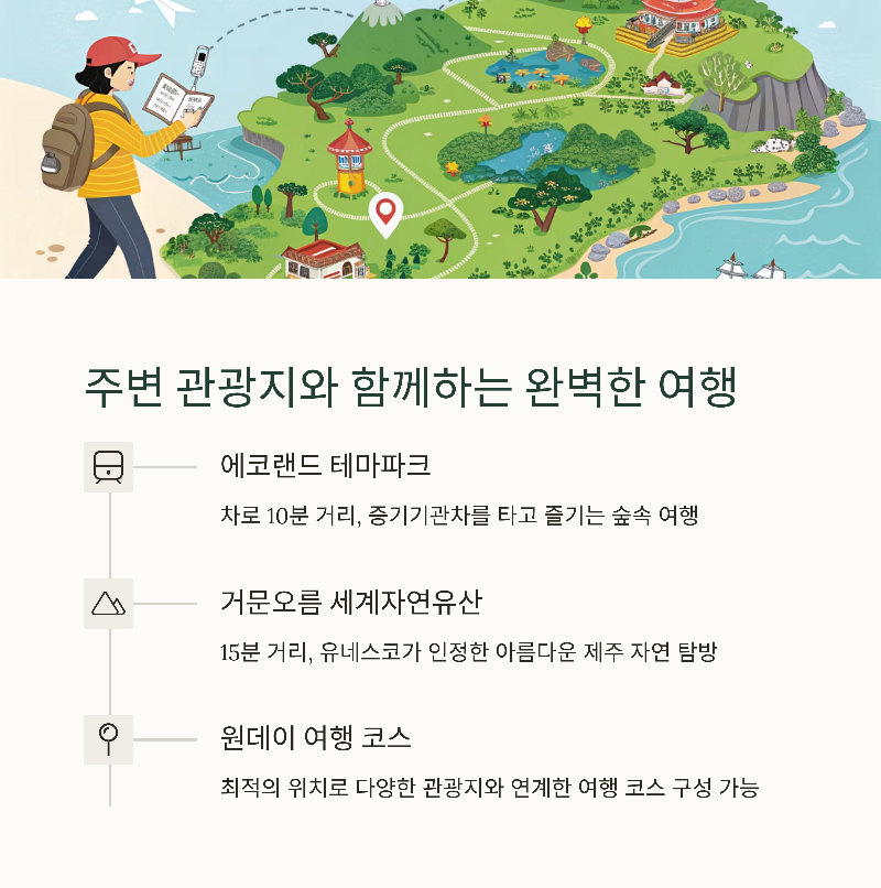 선녀와나무꾼은 단순히 관람하는 공간을 넘어, 직접 체험하고 가족 간 소중한 추억을 만들 수 있도록 다양한 프로그램을 제공하고 있습니다. 또한 주변에는 에코랜드테마파크, 거문오름 등 인기 관광지가 인접해 있어 하루 코스 여행으로도 훌륭합니다. 가격 대비 만족도 또한 높은 편이며, 네이버 예약 등을 통한 온라인 예매 시에는 최대 36%까지 할인 혜택도 받을 수 있어 경제적으로도 추천할 만한 장소입니다.