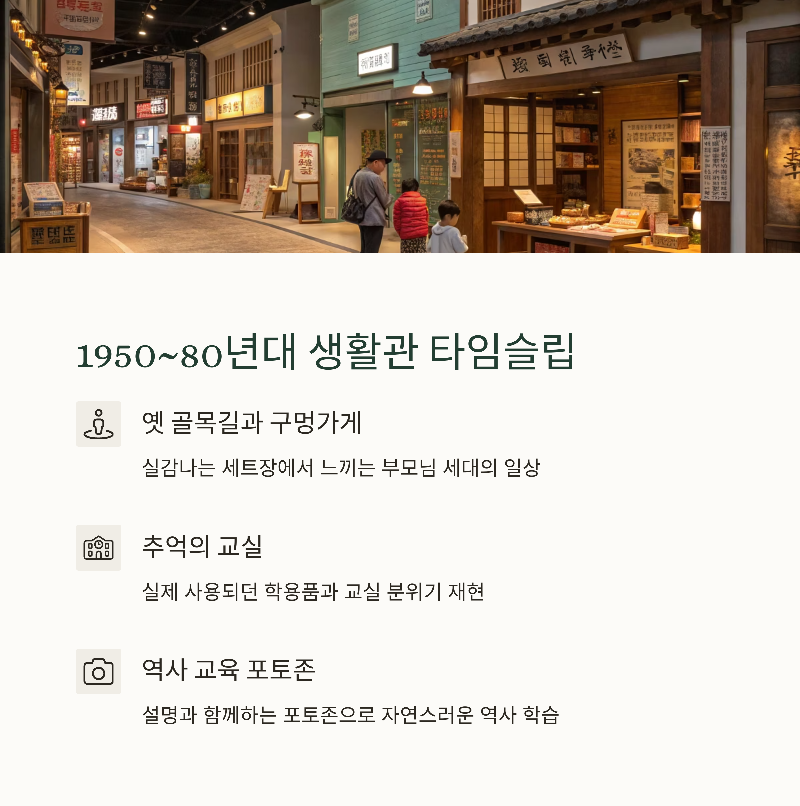 | 가족 여행지 추천 이유 | 부모님, 아이 모두 즐길 수 있는 레트로 감성 체험 공간 |