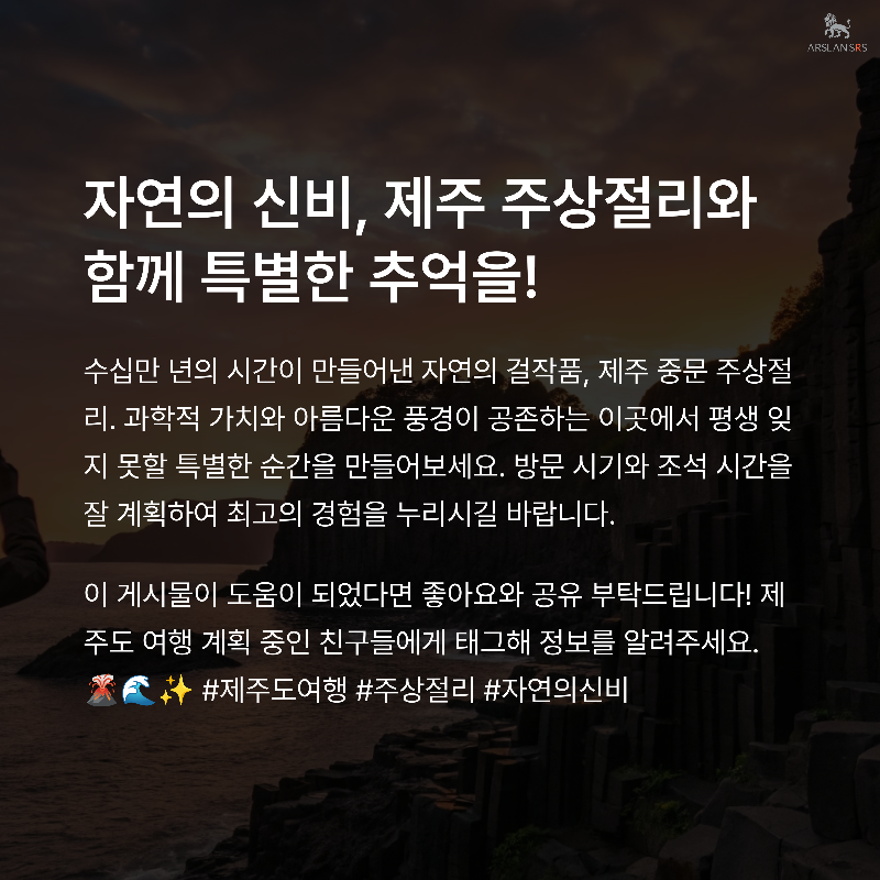 제주를 방문한다면 중문 주상절리는 절대 놓칠 수 없는 명소입니다. 화산 활동이 남긴 자연의 유산, 그리고 바다와 맞닿은 거대한 현무암 기둥은 그 자체로 압도적인 감동을 선사합니다. 지난 여행에서 직접 걸어보며 느꼈던 웅장함과 해안가를 따라 쏟아지는 파도 소리, 눈앞에 펼쳐지는 광활한 수직 암석의 풍경은 지금도 생생하게 기억에 남아 있습니다. 이 글에서는 중문 주상절리의 과학적 가치부터 실제 방문 팁까지, 실용적인 정보와 함께 저의 여행 후기를 진솔하게 담아보려 합니다. 특히 현장에서 직접 담은 느낌과 실제 동선, 그리고 관광객이 알아두면 좋은 소소한 꿀팁까지 모두 공유드릴게요. 자연을 좋아하는 분, 제주도의 진짜 매력을 느끼고 싶은 분이라면 이번 글을 통해 꼭 방문해보고 싶은 마음이 들기를 바랍니다.