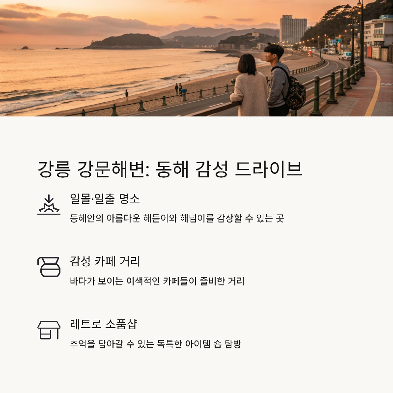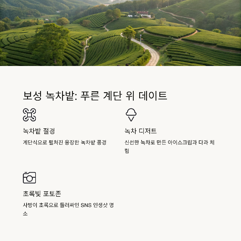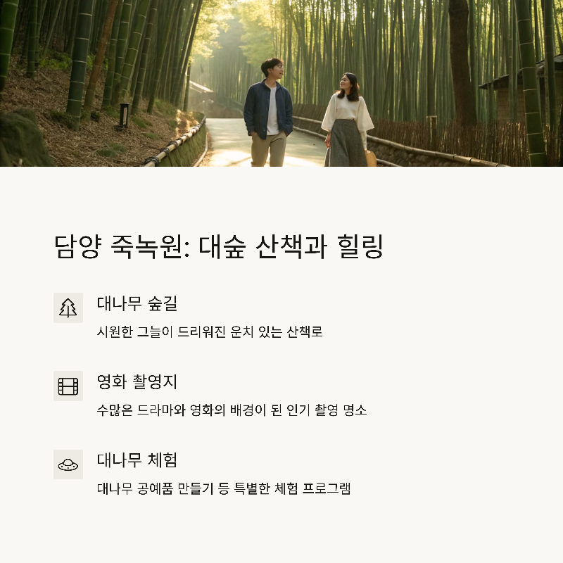 강원도 강릉의 강문해변은 고요하고 한적한 분위기로 커플에게 특히 인기 있는 장소였습니다. 해변을 따라 조성된 산책로와 카페에서의 일출 데이트는 그 어떤 도심 여행보다 잔잔한 감동을 주었죠. 그리고 담양 죽녹원과 보성 대한다원의 녹차밭은 힐링과 자연을 느끼기에 최적의 공간이었습니다. 대숲을 걷는 시간, 초록빛 가득한 녹차밭 속을 산책하며 느꼈던 그 평화로움은, 서로의 마음을 더 깊게 만들어주었어요.
