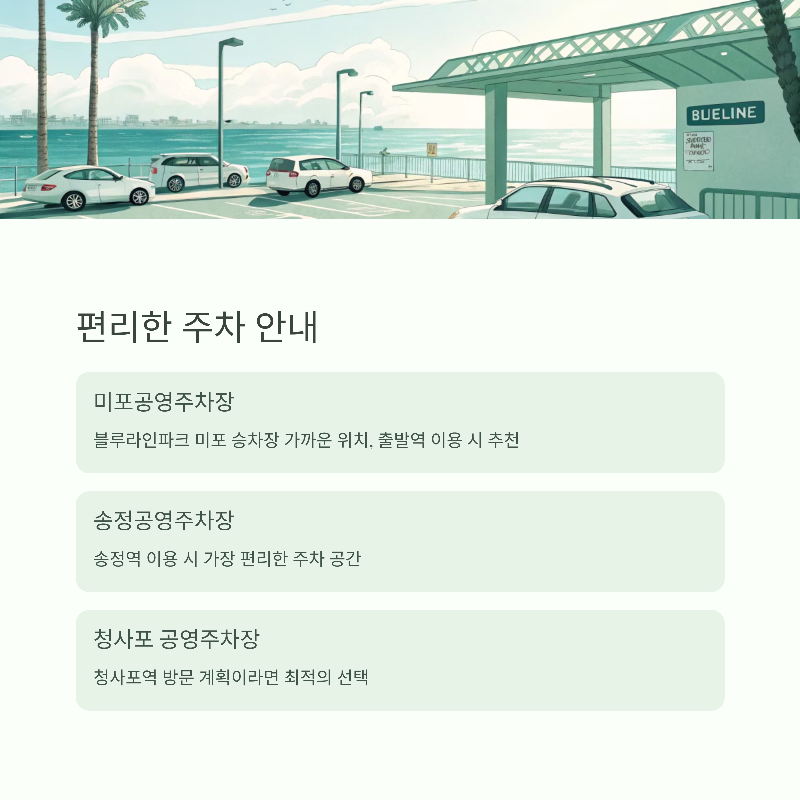 미포공영주차장 — 블루라인파크 미포 승차장과 가깝습니다. (유료)